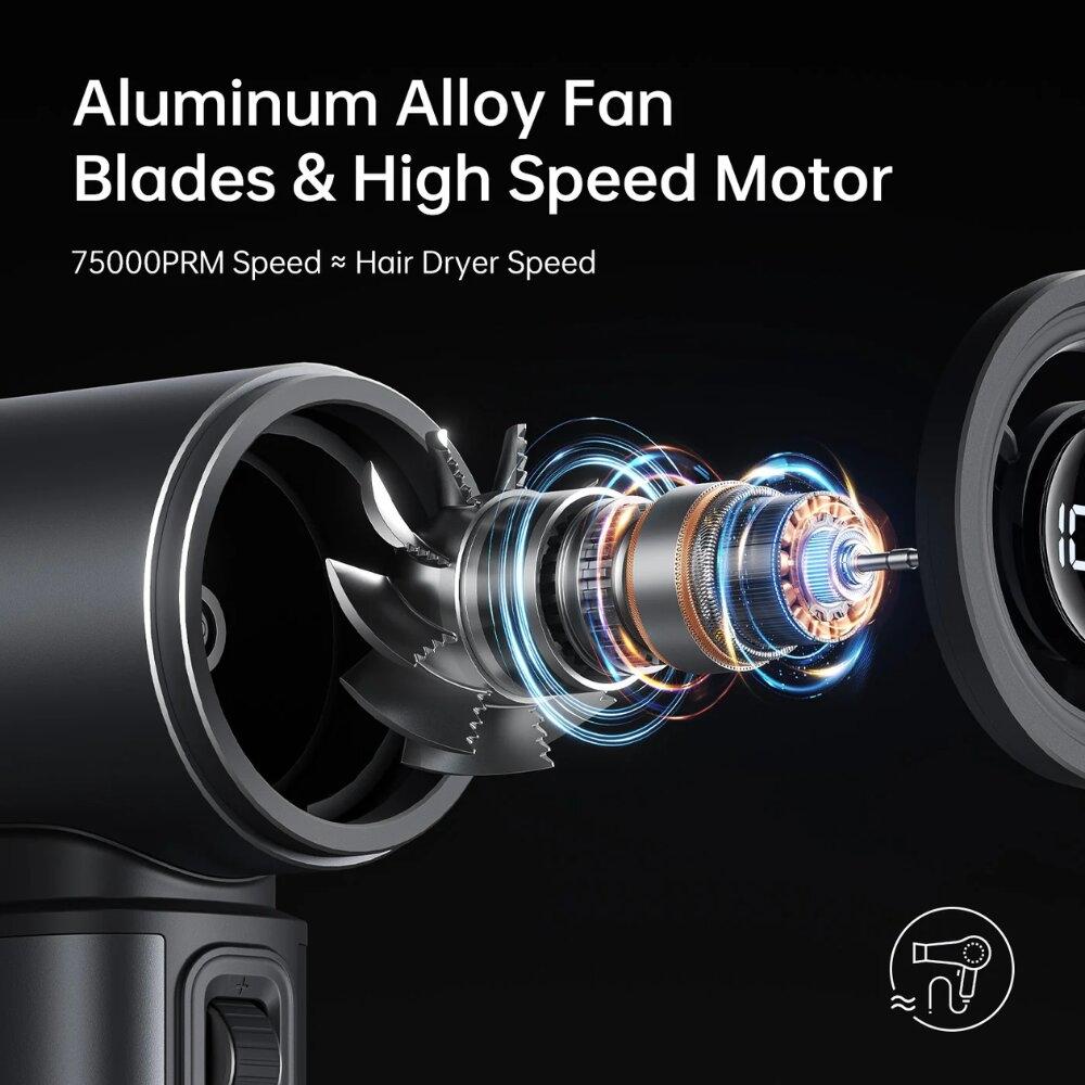 - หน้าจอดิจิทัล LED แสดงระดับแรงลมและแบตเตอรี่ พร้อมปุ่มปรับระดับแรงลมแบบล้อเลื่อน ใช้งานง่าย