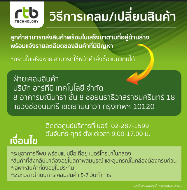 – บริการหลังการขายสามารถติดต่อได้ที่ Synnex Care โทร 1251 หรือเมล service_FL@Synnex.co.th